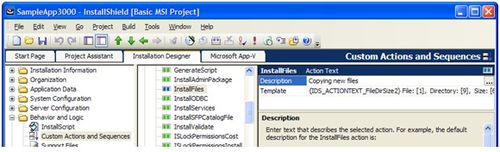 After rebuilding and running the project, the new action data for the InstallFiles action appears as follows.